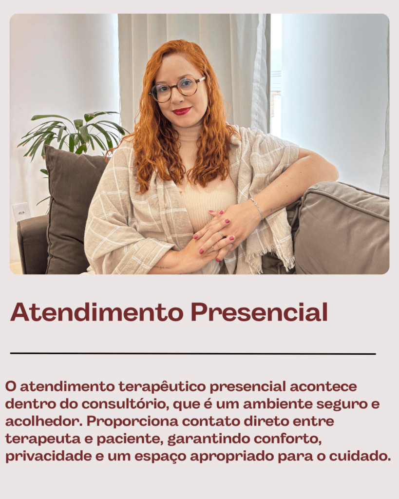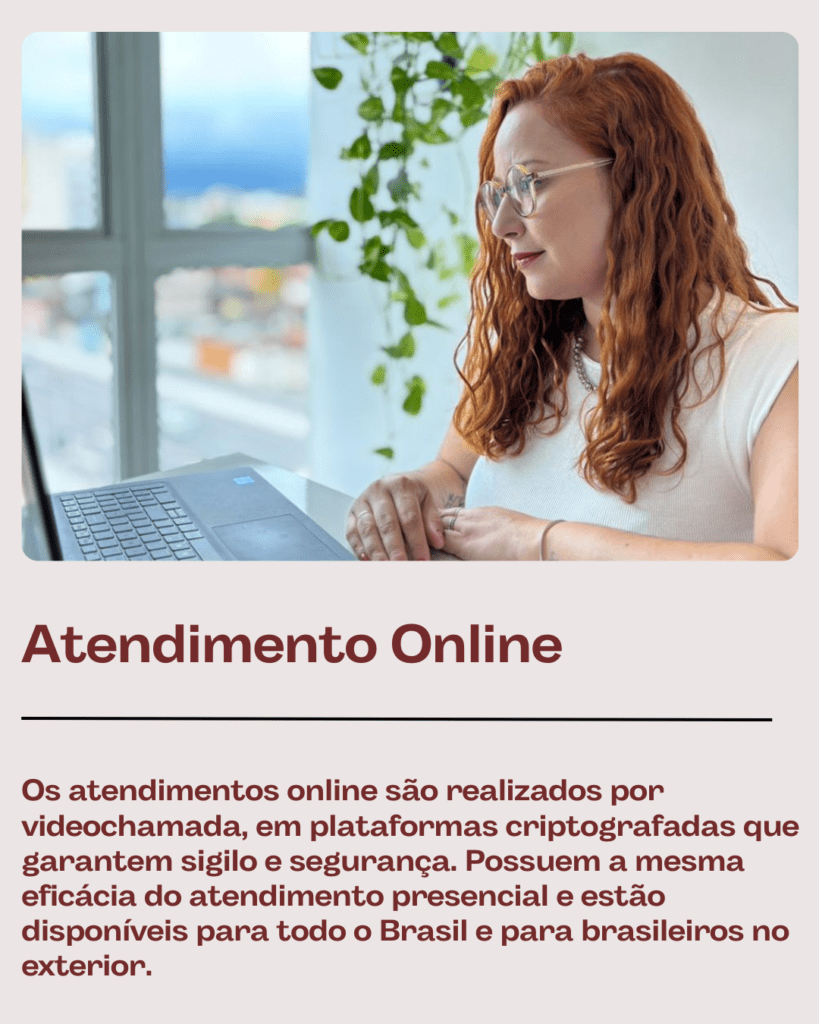 Na terapia presencial, o cuidado acontece no consultório, já na modalidade online ele acontece à distância, mantendo a escuta, o vínculo e a ética do processo.
